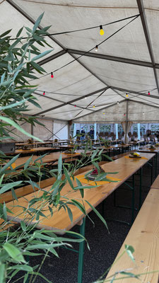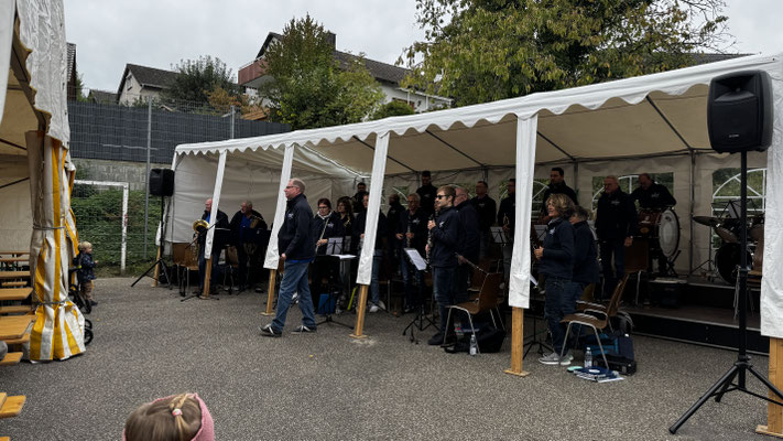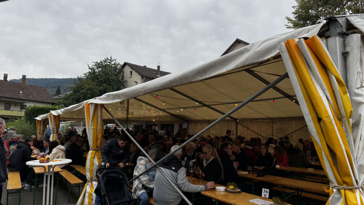 Im Festzelt und auf dem Platz war den ganzen Tag über ordentlich was los. Die liebevoll herbstlich geschmückten Tische waren genauso beliebt wie der neue Wein und der traditionelle Zwiebelkuchen. Und wer's lieber süß mochte, wurde im Musiker-Café mit hausgemachten Kuchen und Torten glücklich gemacht. So mancher kam sogar zweimal, rein aus Respekt vor der Backkunst natürlich 😉