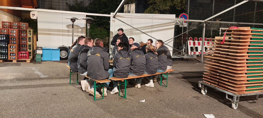 Schon zum Start kamen die ersten Gäste hungrig (und durstig) auf den Platz geströmt. Kein Wunder, bei Klassikern wie dem "Pfälzer Teller" mit Saumagen, Bratwurst, Sauerkraut und Schupfnudeln. Auch die Kürbissuppe war schnell leer und unser neuer "Burger Pfälzer Art" hat sich direkt in viele Herzen (und Mägen) gespielt.